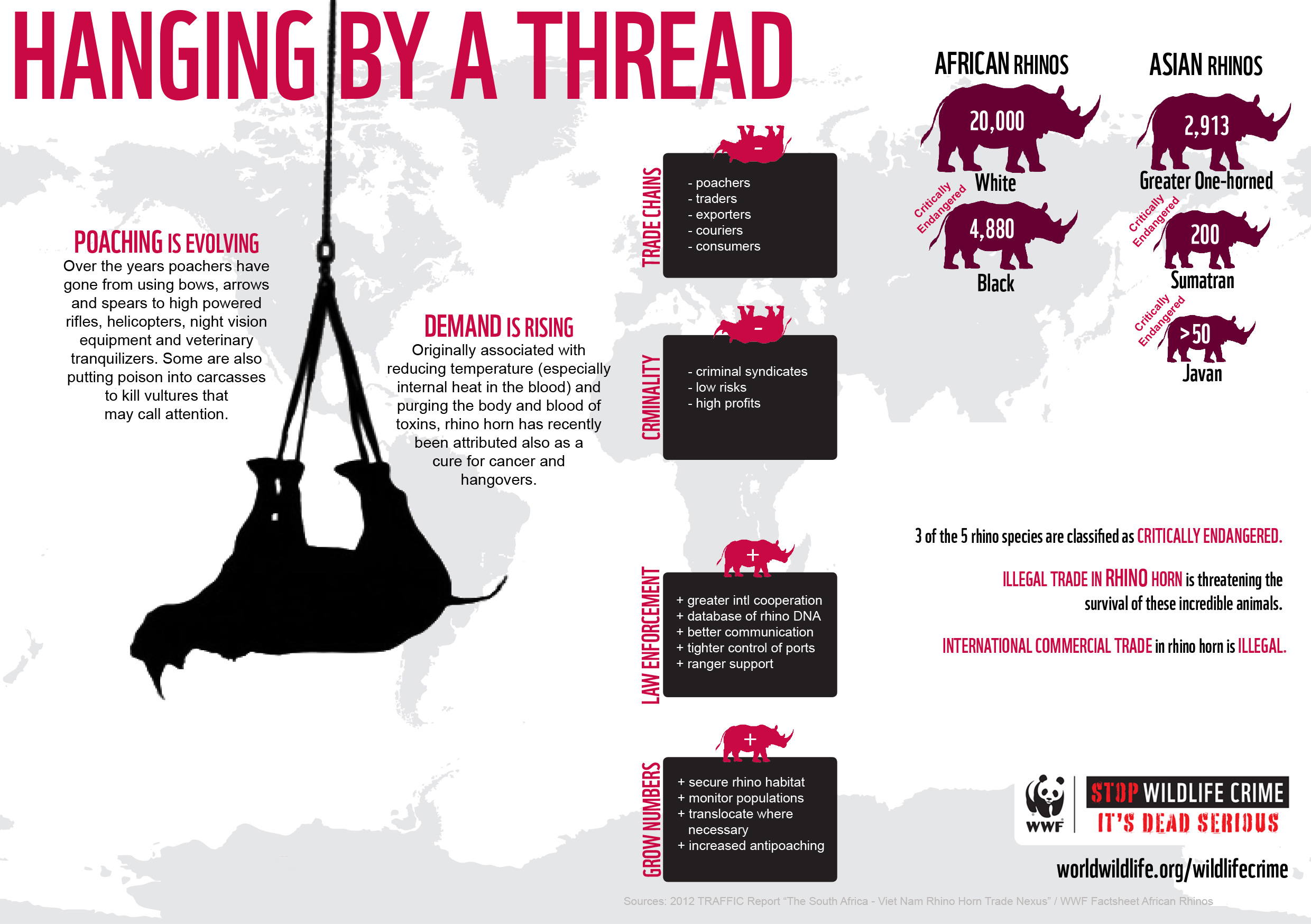 I consumatori sono generalmente in Cina o Hong Kong, pertanto il commercio di avorio e di corno di rinoceronte opera mediante reti internazionali organizzate, che coinvolgono anche trafficanti di armi.
