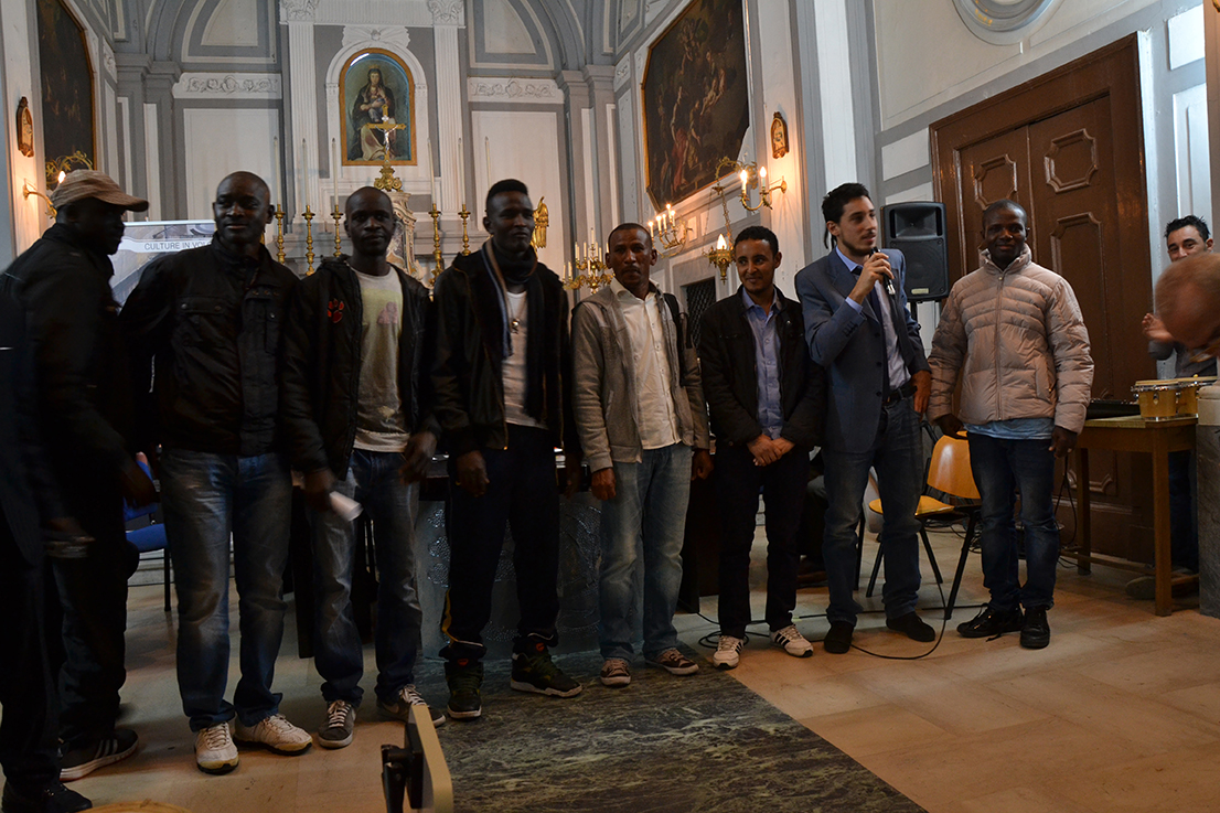 Il Laboratorio L’avventura di latta – Idriss, Tiamoko, Selim, Adam, Amadou, Jacob, Ismail, Ibrahim, Emmanuel, Salifu, coordinatore arch. Marco Cecere