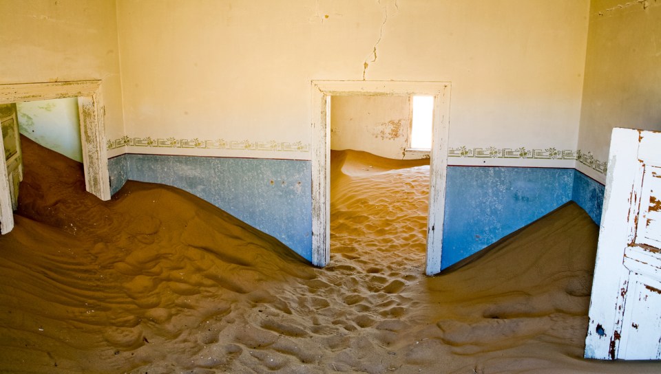 La città fantasma di Kolmanskop, primo centro diamantifero di inizio ‘900. Esauriti i diamanti della zona, i cercatori abbandonarono la cittadina e il deserto, in poco tempo, si è rimpossessato dei suoi spazi portando le sue dune fin dentro le abitazioni e creando uno scenario surreale (foto di Andrea Mazzella)